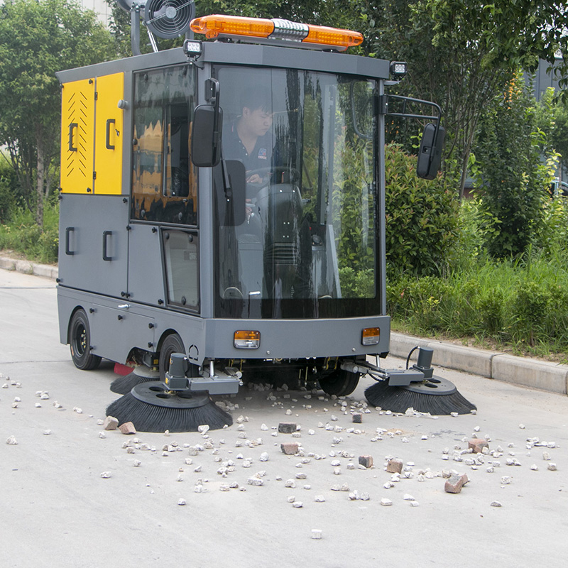 莱特LT-G23型,全封闭四轮驾驶式扫地车,配备高压清洗和高压雾炮功能,清扫宽度2300mm,满电工作时间为4-6小时,工作效率20000㎡/h,采用的是200A锂电池,高压雾炮射程可达10米以上,可对作业环境高效的降尘,还可以用于绿植养护和环境消杀。高压水枪可以对地面顽固污渍进行清洁,还可以冲洗路牙石,为绿植浇水,工作之余,还可以用高压水枪清洗车辆。应用场景为:厂区、车间、公园、街道、物业小区、码头、学校、机场等需要大面积清扫的区域区域。